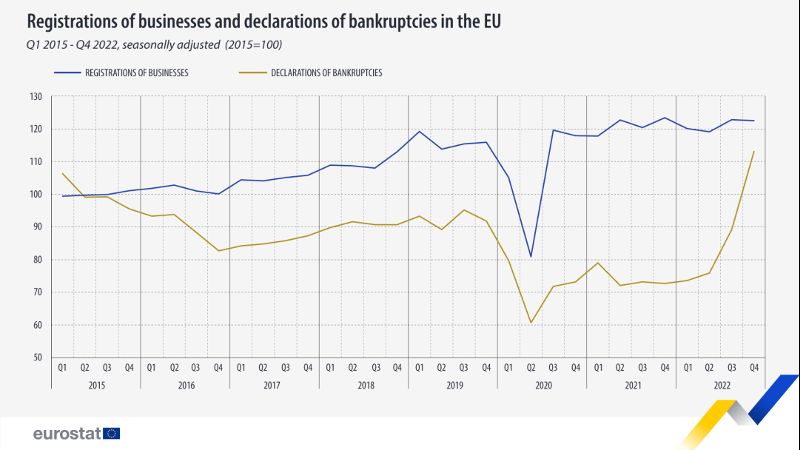 2022年四季度,欧盟申请破产企业为2015年来最高水平,中小企业生存尤为艰难。