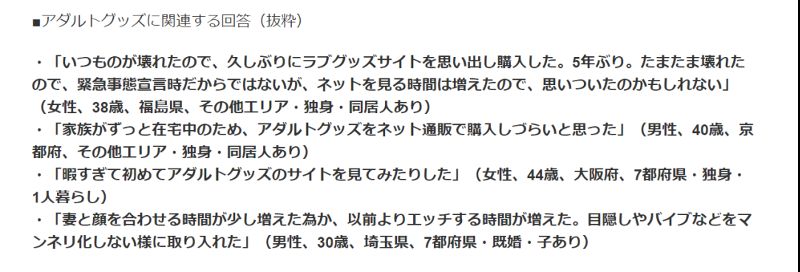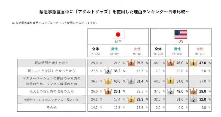近三年来,新冠疫情对于日本国内成人用品的消费有极大的推动作用。据一项针对疫情期间成人用品使用习惯的统计显示,日本女性用户在疫情期间购买成人用品的比例在大幅提升,且大部分是作为性行为的补充手段。