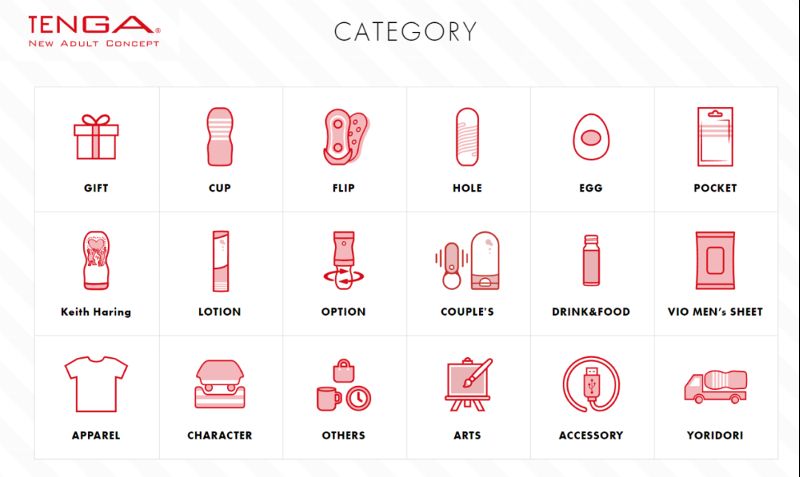 日本最知名的成人用品公司,毫无疑问就是TENGA了。这家公司成立于2005年3月25日,创始人松本光一原来是做汽车修理工的,后来投身于成人用品行业,通过三年的产品试验,终于一炮打响。目前该公司相关产品的销售额基本占据日本成人用品市场的50%左右,是名副其实的王者。产品系列也非常完整,看下图所示即知,原来我们的知识面还是太窄了!😓。