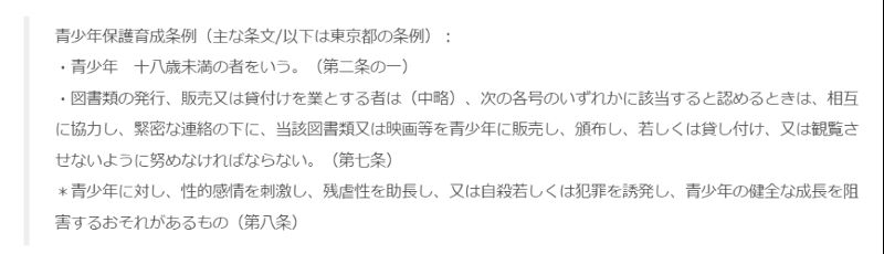 在实体店铺型风俗特殊行业的管控法律中,明确说明了适用主体——「店舗を設けて、専ら、性的好奇心をそそる写真、ビデオテープその他の物品で政令で定めるものを販売し、又は貸し付ける営業」(开设店铺,专门销售或出租具有性魅力的照片、录像带等政令规定的物品的事业)。