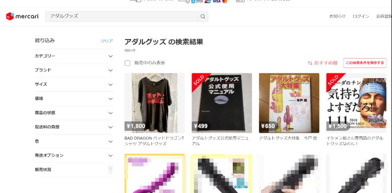 另外,日本最大的二手转让平台Mercari(日语名为メルカリ,中文昵称为煤炉),也可以以个人自用转让中古品的方式销售成人用品。我们搜了一下,东西还不少,价格也很便宜。日本人的所谓中古品,大部分是全新的,所以不用担心被使用的问题。