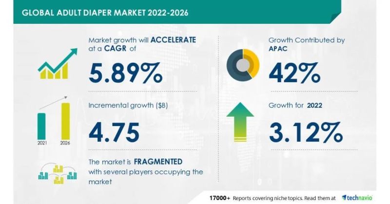 此外,Technavio的最新市场报告显示,预计在2021年至 2026 年间,全球成人纸尿裤市场规模将增长47.5 亿美元,以5.89%的复合年增长率加速。